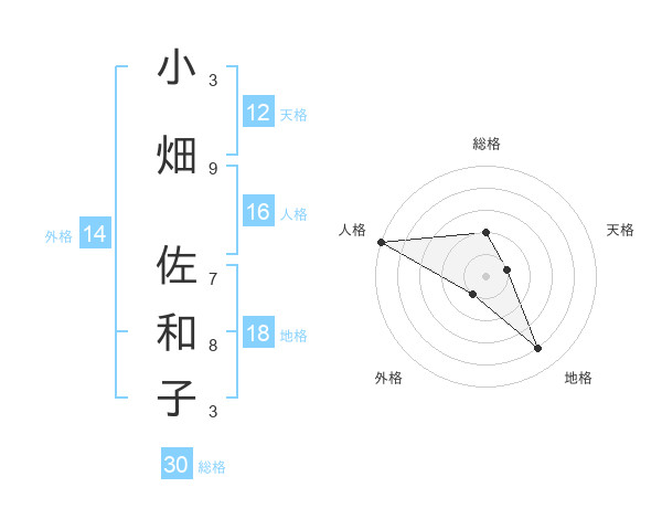 小畑 佐和子さんを姓名の画数から五運を鑑定