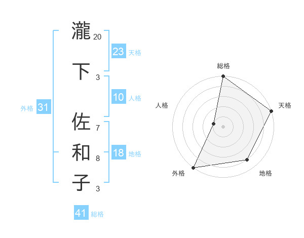 瀧下 佐和子さんを姓名の画数から五運を鑑定