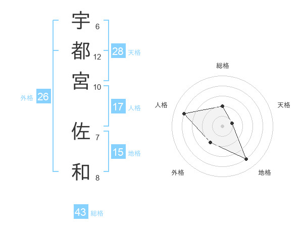 宇都宮 佐和さんを姓名の画数から五運を鑑定