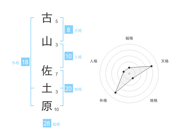 古山 佐土原さんの総格は28画の1点!