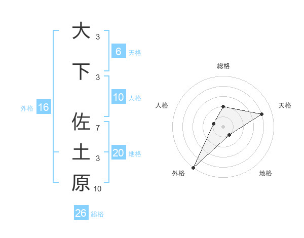 大下 佐土原さんの総格は26画の2点!