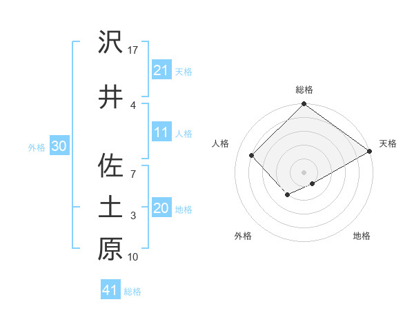 沢井 佐土原さんを姓名の画数から五運を鑑定