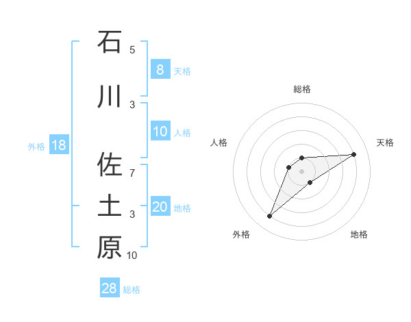 石川 佐土原さんを姓名の画数から五運を鑑定