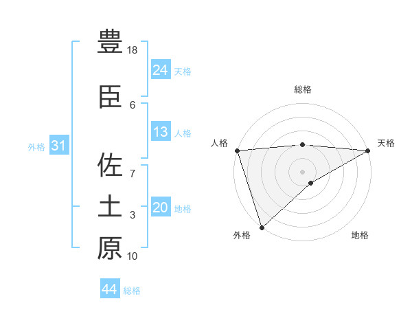 豊臣 佐土原さんの天格は24画の5点!