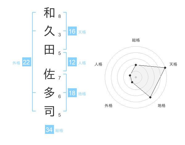 和久田 佐多司さんを姓名の画数から五運を鑑定