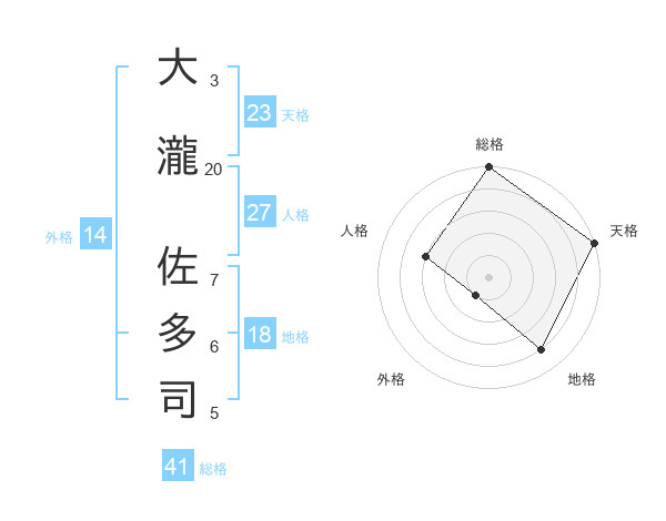 大瀧 佐多司さんを姓名の画数から五運を鑑定