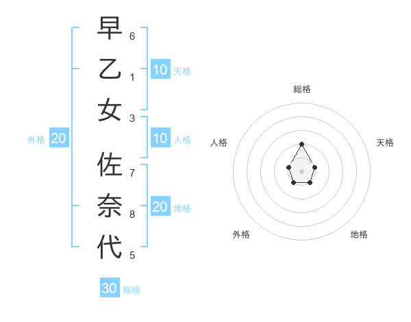 早乙女 佐奈代さんの総格は30画の2点!