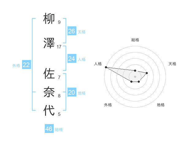 柳澤 佐奈代さんを姓名の画数から五運を鑑定