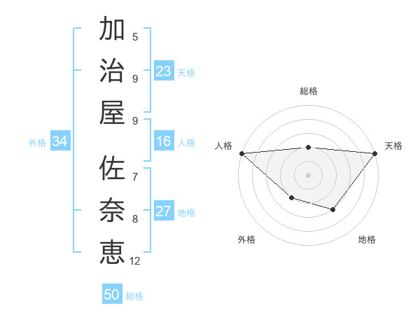 加治屋 佐奈恵さんを姓名の画数から五運を鑑定
