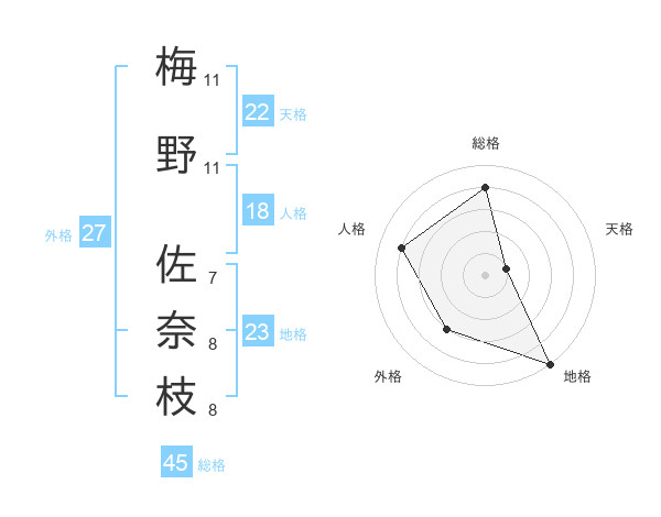 梅野 佐奈枝さんを姓名の画数から五運を鑑定