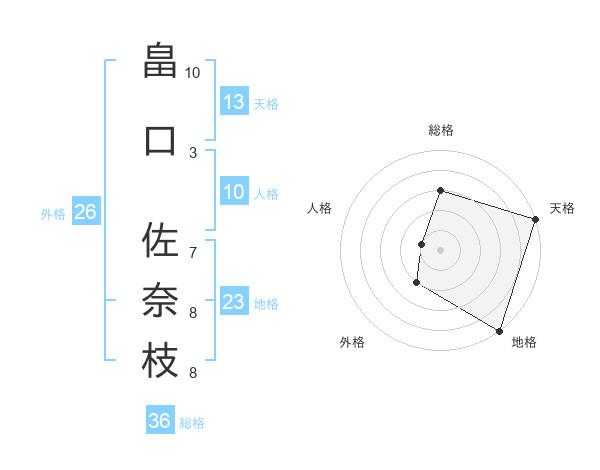 畠口 佐奈枝さんを姓名の画数から五運を鑑定