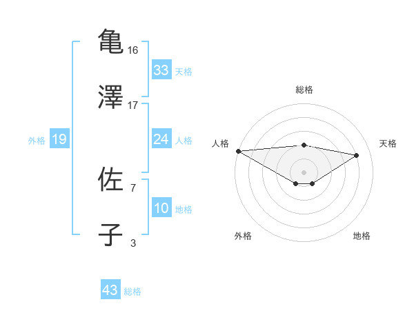 亀澤 佐子さんの総格は43画の2点!