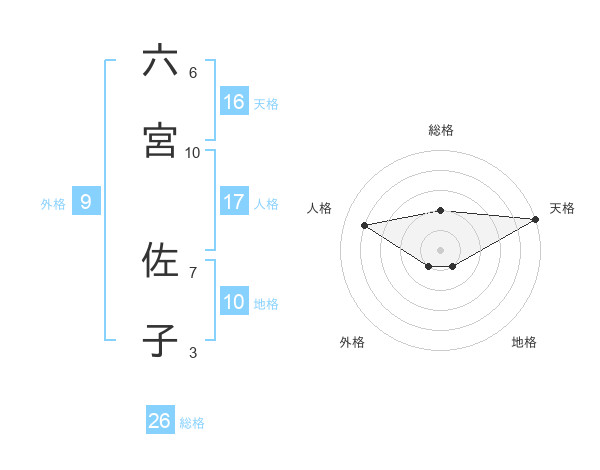 六宮 佐子さんの総格は26画の2点!