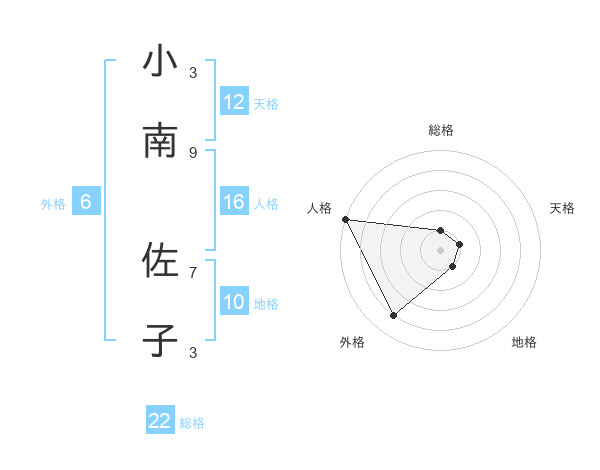 小南 佐子さんの総格は22画の1点!