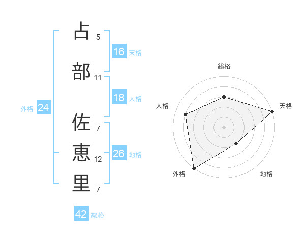 占部 佐恵里さんを姓名の画数から五運を鑑定