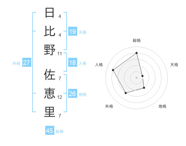 日比野 佐恵里さんを姓名の画数から五運を鑑定
