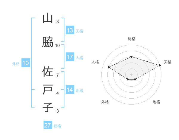 山脇 佐戸子さんを姓名の画数から五運を鑑定