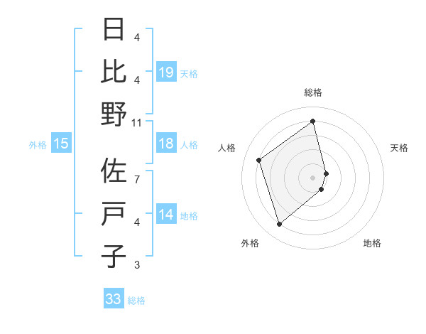 日比野 佐戸子さんを姓名の画数から五運を鑑定