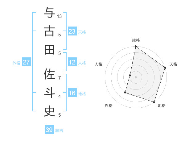 与古田 佐斗史さんを姓名の画数から五運を鑑定