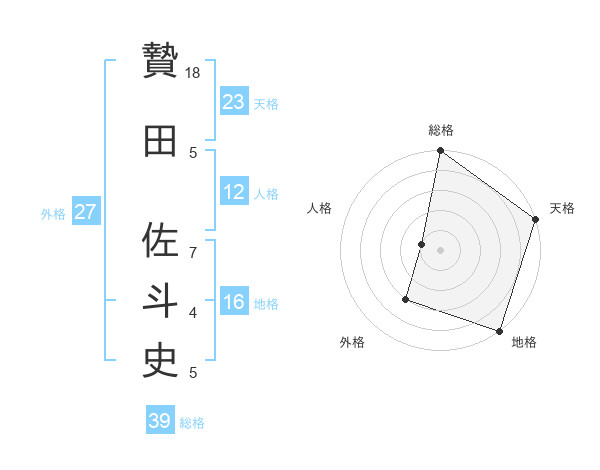 贄田 佐斗史さんの総格は39画の5点!