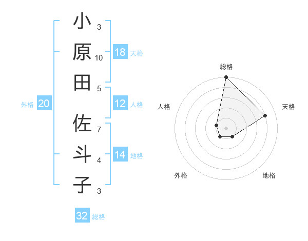 小原田 佐斗子さんの総格は32画の5点