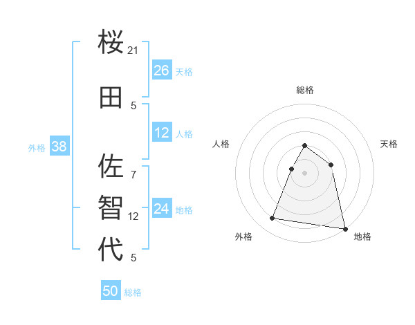 桜田 佐智代さんを姓名の画数から五運を鑑定