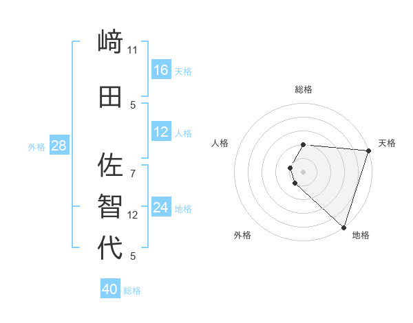 﨑田 佐智代さんの総格は40画の2点!