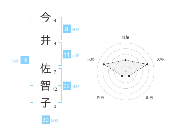 今井 佐智子さんを姓名の画数から五運を鑑定