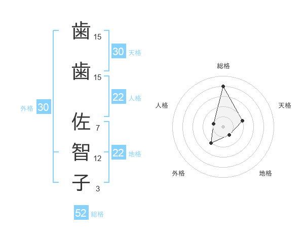 歯歯 佐智子さんを姓名の画数から五運を鑑定