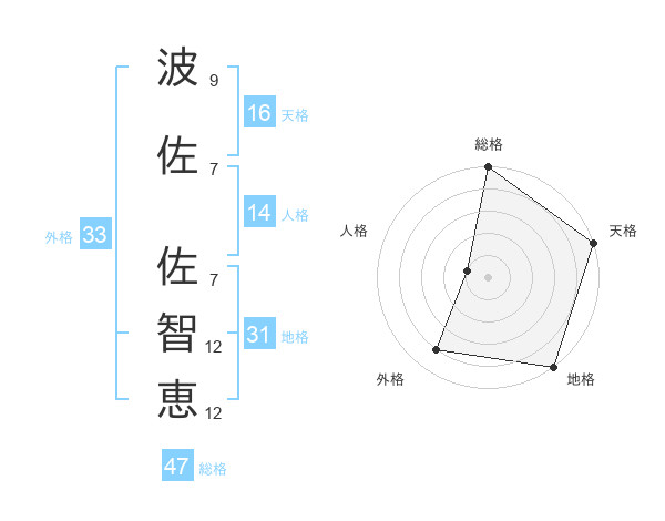 波佐 佐智恵さんの総格は47画の5点!