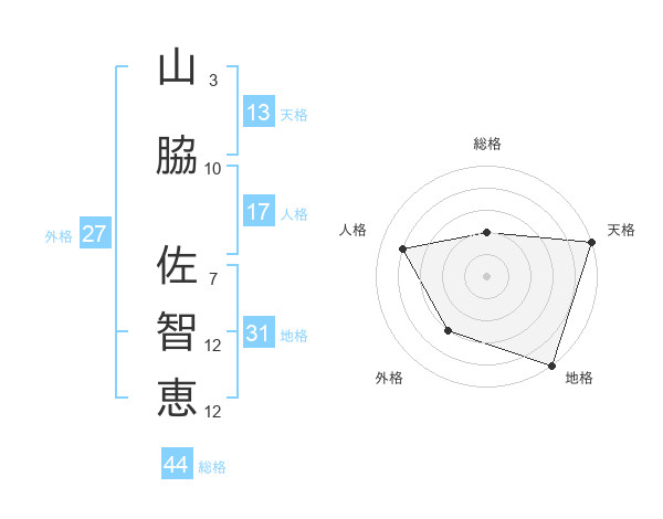 山脇 佐智恵さんを姓名の画数から五運を鑑定