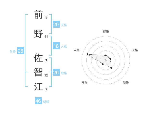 前野 佐智江さんの総格は46画の1点!