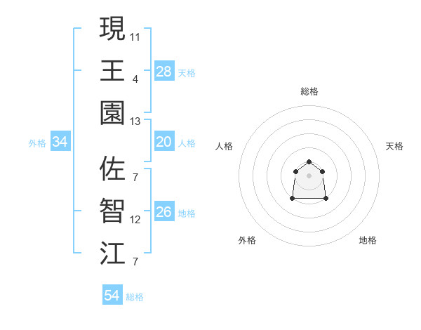 現王園 佐智江さんを姓名の画数から五運を鑑定