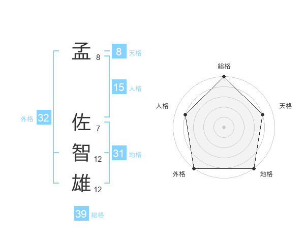 孟 佐智雄さんの総格は39画の5点!