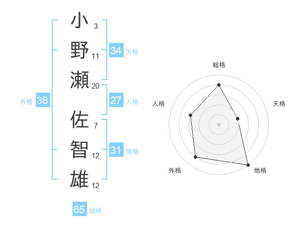 小野瀬 佐智雄さんを姓名の画数から五運を鑑定