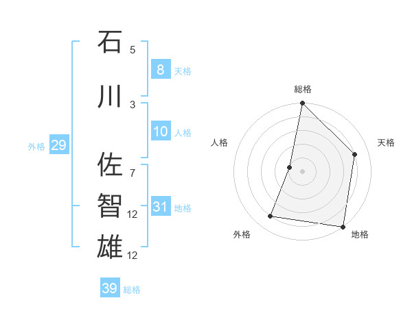 石川 佐智雄さんの総格は39画の5点!