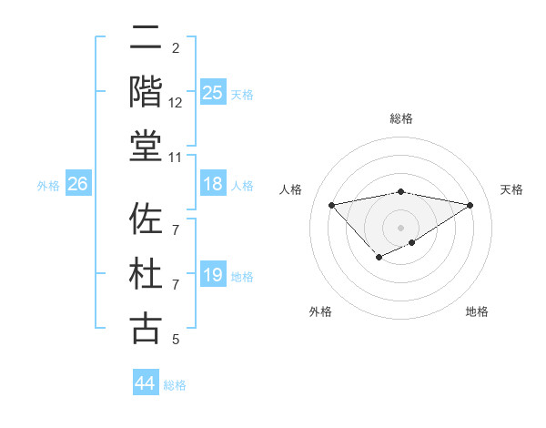 二階堂 佐杜古さんを姓名の画数から五運を鑑定