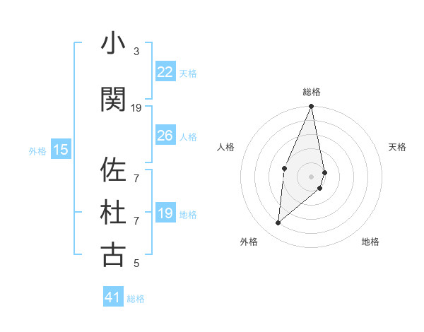 小関 佐杜古さんを姓名の画数から五運を鑑定