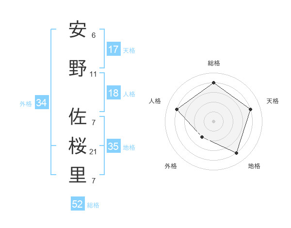安野 佐桜里さんの総格は52画の4点!