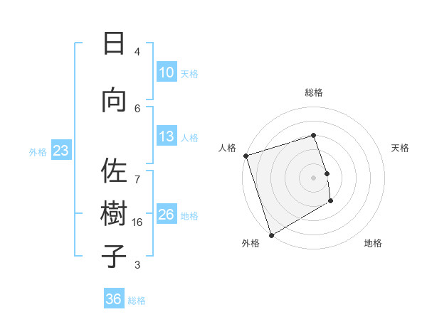 日向 佐樹子さんを姓名の画数から五運を鑑定