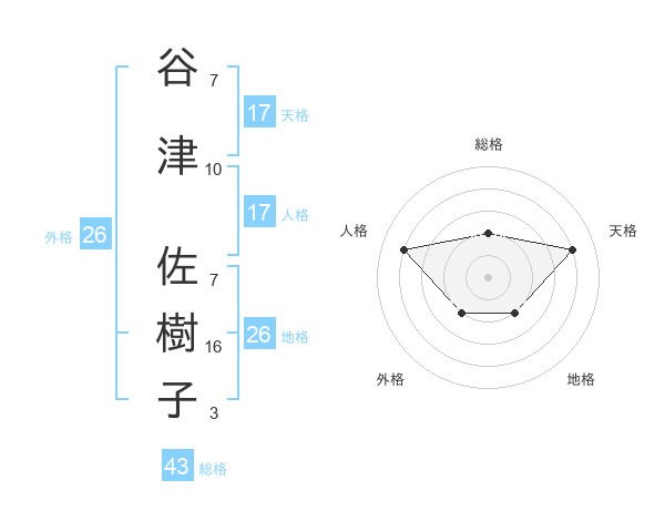 谷津 佐樹子さんを姓名の画数から五運を鑑定
