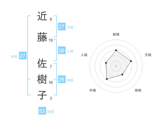 近藤 佐樹子さんの総格は53画の3点!