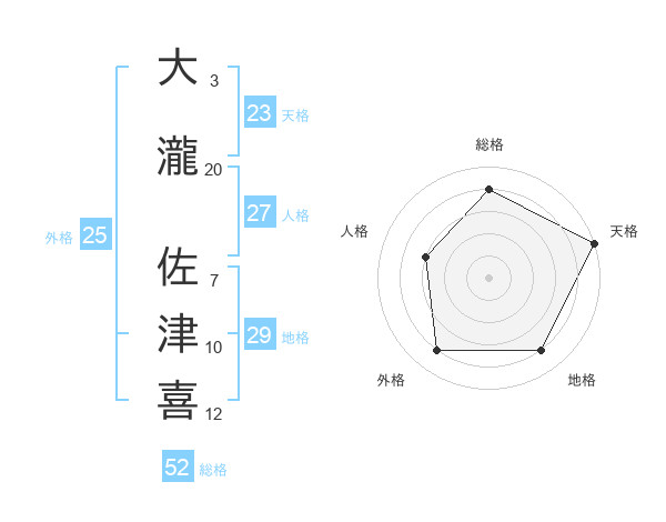 大瀧 佐津喜さんの総格は52画の4点!