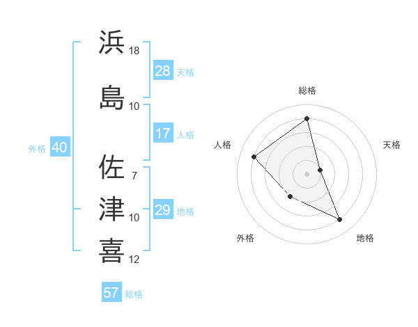 浜島 佐津喜さんを姓名の画数から五運を鑑定
