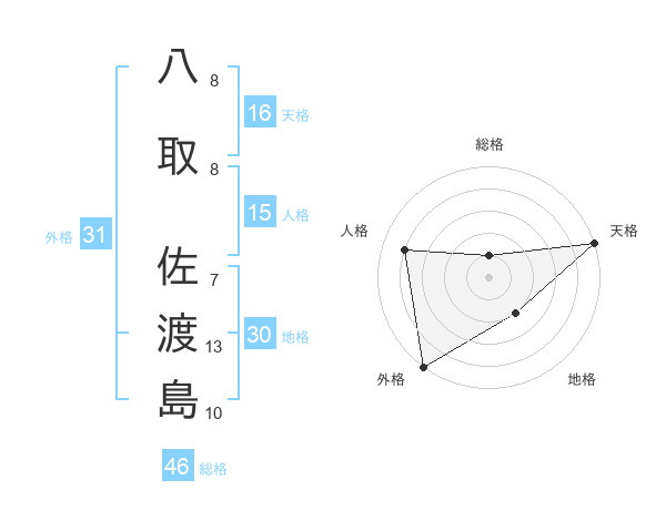八取 佐渡島さんの総格は46画の1点!