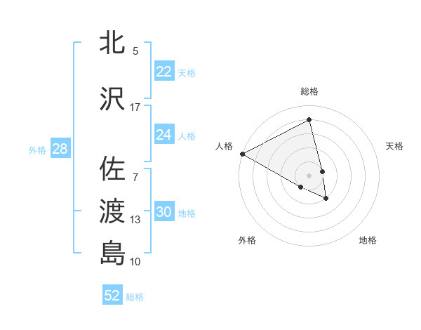 北沢 佐渡島さんを姓名の画数から五運を鑑定