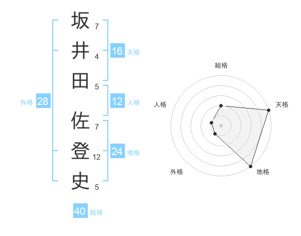 坂井田 佐登史さんを姓名の画数から五運を鑑定