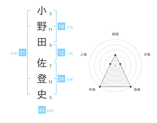 小野田 佐登史さんを姓名の画数から五運を鑑定