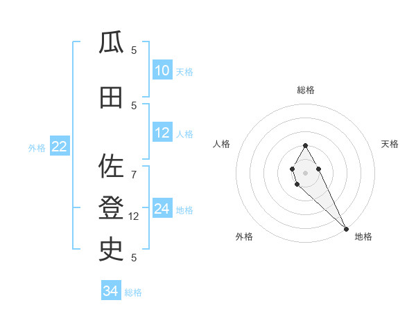 瓜田 佐登史さんを姓名の画数から五運を鑑定