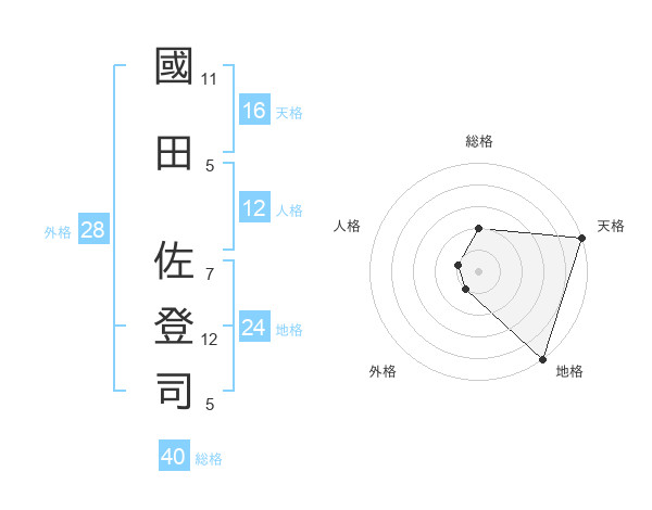 國田 佐登司さんを姓名の画数から五運を鑑定